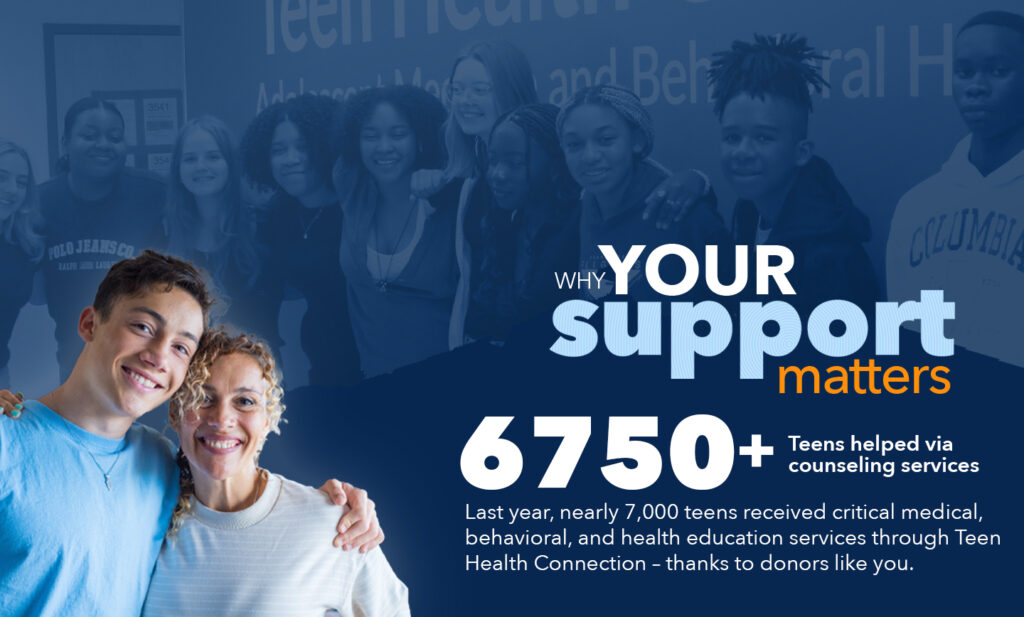 Your gift makes an impact on the nearly 7,000 teens we serve annually through integrated medical and behavioral health services, teen leadership development, health and parent education, research, and advocacy.
